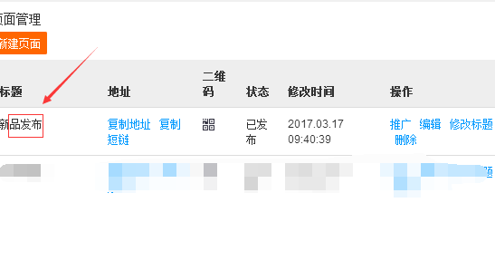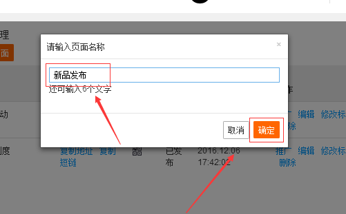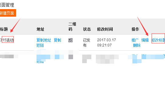 8、如果你想更改活動頁面標題,只需要回到“自定義頁面”,點擊活動后面的“修改標題,然后輸入新的標題,并點擊“確定”即可更改標題。”