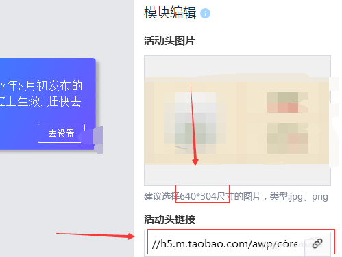 7、進入活動編輯頁面以后,我們直接在活動頁面上點擊一下,然后在右面就可以看到上傳活動頁面圖片以及加活動頁面鏈接的地方。我們點擊重新上傳活動頁面圖片,然后更換相應的活動頁面鏈接,點擊確定以后,再點“立即發(fā)布”,這樣就把所有的手機端活動頁面圖片給更換了。