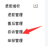 5、點(diǎn)擊退款維權(quán)后有四個(gè)入口,分別是退款管理/售后管理/ 投訴管理/舉報(bào)管理 。這邊需要點(diǎn)擊投訴管理