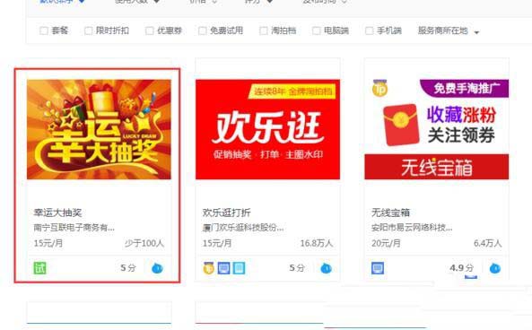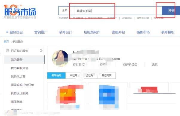 5、在打開的服務市場中輸入“幸運大抽獎”,點擊“搜索”
