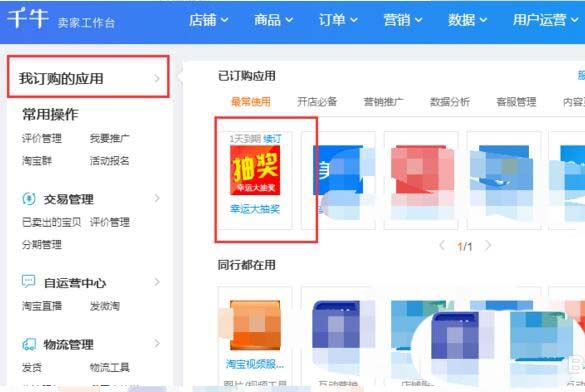 10、返回之前的賣家工作臺,點擊“我訂購的應用”——“幸運大抽獎”