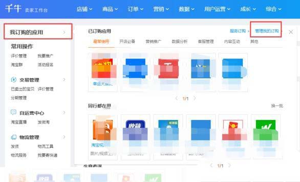 4、此時打開千牛賣家工作臺,點擊“我訂購的應用”——“管理我的訂購”