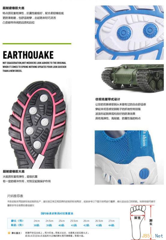 圖片效果美觀但不夸張,賣家要突出賣點,適當?shù)目鋸埵潜匾模邕\動鞋,寶貝的每一種顏色,每一個面,每一個用戶可能關(guān)心的細節(jié)都要體現(xiàn)出來,必要時要有文字說明。鞋子尺碼要有好的的尺碼展示方式,避免買家在拿到實物時經(jīng)常會出現(xiàn)不合適的情況,從而產(chǎn)生不滿。