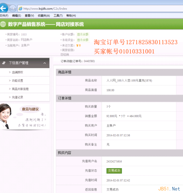 軟件充值商品(例如:捷易通充值、速度達充值等),根據申訴的訂單在軟件充值記錄查詢頁面(例如下圖頁面)查到充值記錄再截圖;