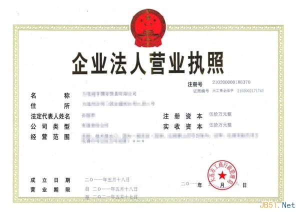 2、營業執照樣本參考: