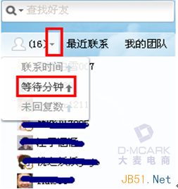 在旺旺聯系中的的客戶左上角有個設置排序的,可以看到有三種選擇方式:按照聯系時間排序。按照等待分鐘排序。按照未回復數排序,可以進行選擇其中一種方式來排序。