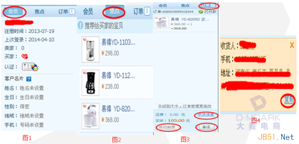 C. 點擊訂單可查看買家是否有購買寶貝,拍下沒付款之前可以修改郵費,付款后可以查看收貨信息,可以備注信息 (如圖3);
