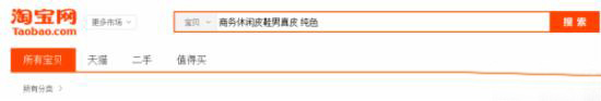圖八:“商務休閑皮鞋男真皮 純色“關鍵詞下的在售寶貝數,在右下。