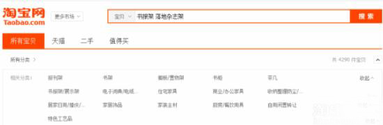 我們可以看到,在淘寶搜索欄,排在第一的類目是細分類目“報刊架”,而且,下面搜索出來的產品,基本上都是在“報刊架”這個細分類目里面的。