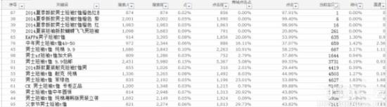 第一步:鎖定“當前寶貝數”較少的關鍵詞。寶貝數的多少,決定了我們最低可以排名在什么位置。如圖:如果我們選擇序號87的關鍵詞,一共只有一個產品,我們排第1;如果選擇序號38、39, 我們排名在首頁;如果選擇序號70,我們可以排在第6頁。