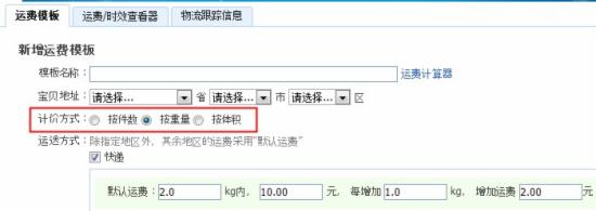 從這個設置頁面我們可以看到,在設置首重時也不再像原來那樣只能按單件設置首重了,賣家可以自由選擇多少件或者多少KG來設置售后。如果你是小飾品的賣家,很多發飾很小,按單件設置首重有些不合理,那你完全可以按實際件數來設置一個相對合理的首重。