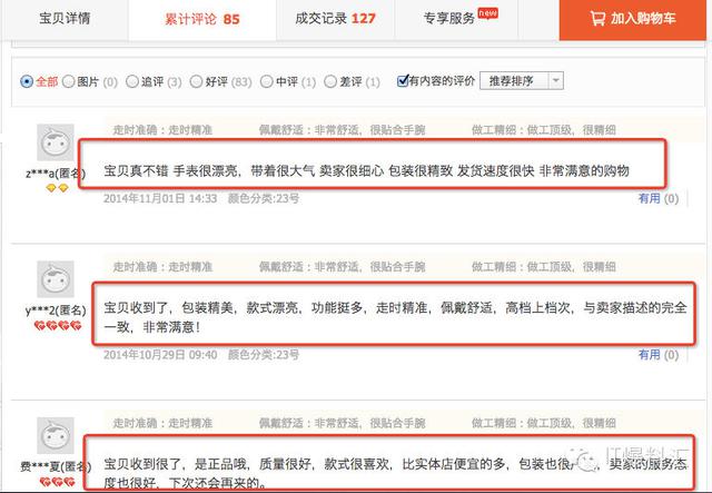 還有其他判斷方法,簡單交代,不予詳解,一是,查看商品的成交記錄,特別是要往前翻看,如果發(fā)現(xiàn)有多次購買的淘寶用戶,刷單的可能性也很大;二是,查看商品的退貨率,如果相比同品類店鋪的退貨率要低出很多,也很有可能是刷單。