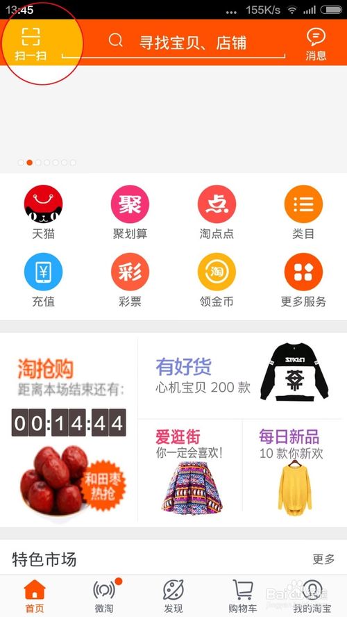 通過打開手機淘寶,右上角的掃一掃來進行,千萬不要用微信的掃一掃。這2家目前還在競爭當中,不能互通。微信掃會被屏蔽掉的。