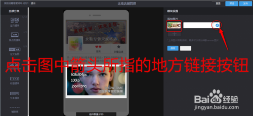 鼠標單擊鏈接地址按鈕后,出現(xiàn)如下圖所示頁面,此時已經說明你已經添加好焦點圖模塊了,你已經完成了無線店鋪焦點圖模塊的展示工作。然后點擊頁面右上方的預覽按鈕,查看自己的設計效果。