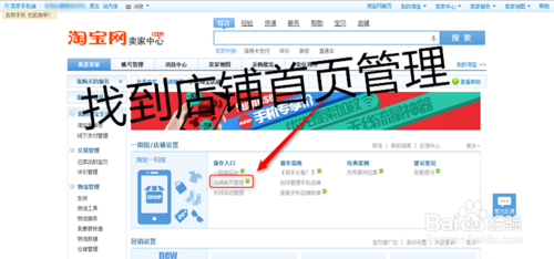 鼠標單擊手機淘寶店鋪后,出現(xiàn)如下圖所示的頁面。找到店鋪首頁管理,并鼠標單擊店鋪首頁管理。