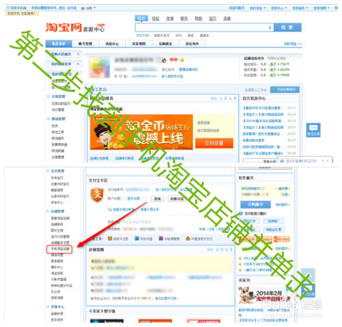 鼠標單擊賣家中心后,出現(xiàn)如下圖所示的頁面。然后往下拉最右面的滾動條,找到手機淘寶店鋪,鼠標單擊手機淘寶店鋪。