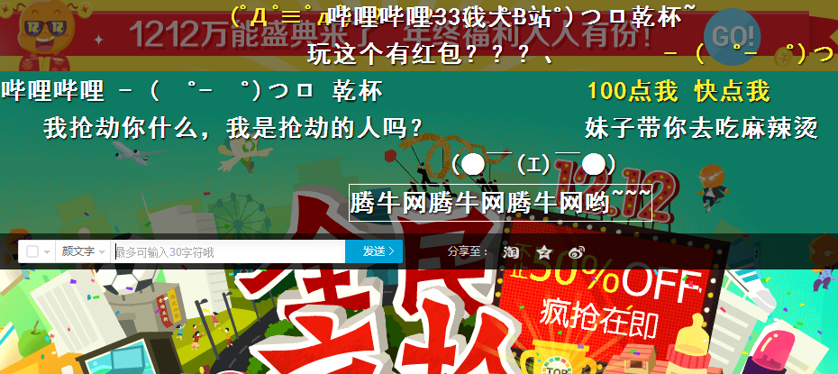 大家可以看到圖片上,淘寶首頁(yè)充斥著只有在彈幕視頻中才能見到的一幕,一群網(wǎng)友不停的在嗶哩嗶哩...