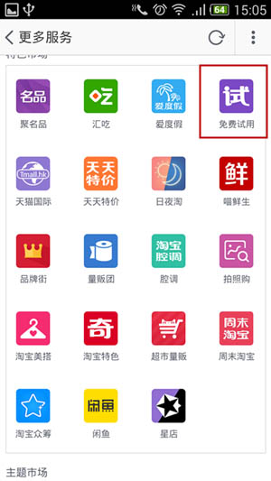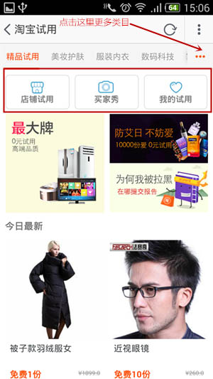 四、點擊免費試用,就可以進入手機淘寶試用中心了
