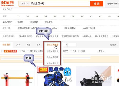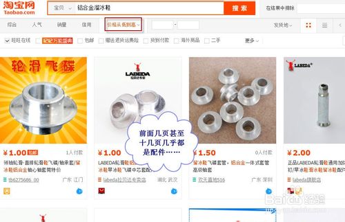 3、如果想買低價或高價的,建議價格排序,單擊價格排序,默認會從低到高,同樣的價位差不多的,我們可以選擇包郵的,這樣如果拒收運費比較好處理,而且包郵的賣家和快遞有合同,實際運費低,讓利會大點;但是有時會發現一個問題,有配件的商品,會在開始幾頁顯示配件,因為配件價格低……