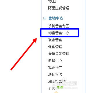 2、登錄后點(diǎn)擊【賣家中心】在左邊的導(dǎo)航欄中間找到【淘寶營銷中心】點(diǎn)擊進(jìn)入。