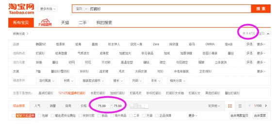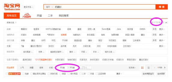 每個價格有每個價格的含義。我簡單的和大家述說下吧。我們如上要挑選出我們的關鍵詞,從而根據關鍵詞的搜索,選擇人氣排名,把首頁的48家店鋪的價格全部加起來,在除以一個48,得出來的平均數看看是多少,如果得出的是50元包郵,可是您的寶貝價格是賣128元包郵,您的寶貝在這個關鍵詞里轉化能高嗎?如果您是預算打造爆款的您還要看算下一銷量排名的平均數是多少,如果是小賣家不是為了打造爆款的就看人氣的平均數是多少呢。我們的客單價一定要符合我們操作的關鍵詞,人群可以接受的范圍,否則轉化和低。例如我們剛說的人氣的和銷量的平均數都是50元,那我們可以評估到這個關鍵詞大家所能接受的范圍就是在50左右。在操作關鍵詞的時候也是要注意到這一點的。我們接著往下說例如我們定好了我們的要操作的這些關鍵詞找出了這些詞語的人氣和銷量的首頁的平均價格是例如80元。這個時候我們進退五元,既得出75元到85元這個是寶貝價格定價范圍。這個時候如果我們的關鍵詞是打底衫的話,我們就要看下我們到底定位那個價格合適。如圖: