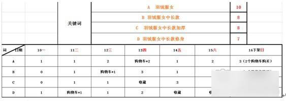 這樣大家就能看的清晰些,這個比例只是做人氣700%的人氣增長值。大家也知道了每款寶貝我們只有21天的周期操作,所以人氣的增長我們在第一個星期可以控制在700%,第二個星期控制1500%,第三個星期控制3000%。在這里我們為什么要選出關鍵詞A.B.C.D呢?因為消費者是搜索關鍵詞而進到淘寶頁面的,所以我們有去操作的關鍵詞才會得到更好的展示。沒有操作的關鍵詞是進來不到什么流量的,因為您沒有去跟蹤,關鍵詞就會做的比同行差,排名就難去競爭了。所以一定要去做好寶貝跟蹤的關鍵詞,單個寶貝有去操作的關鍵詞越多就越好,寶貝獲取的流量就越大。這個關鍵詞怎么挑選?如圖: