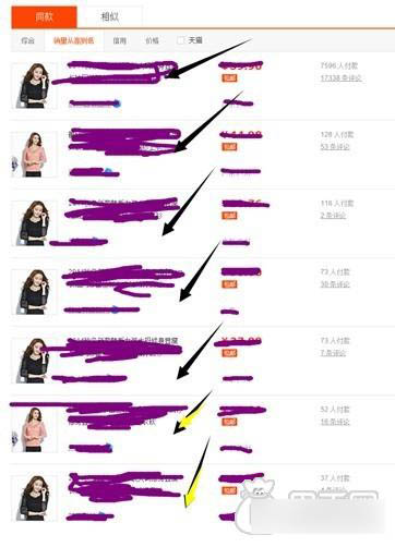在我們找出的款式后。我們要怎么去測試?關鍵詞搜索然后(找出同款) 接著按銷量排名查看一下 如圖: