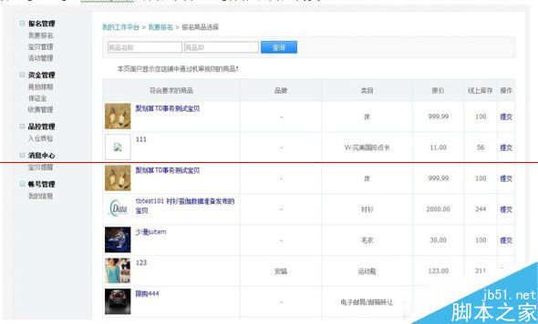 第二步:進入已過機審的商品列表,選擇報名的商品并提交