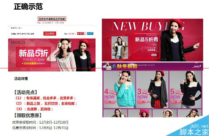 e、活動(dòng)主題和時(shí)間、折扣力度等信息與標(biāo)題、海報(bào)和活動(dòng)專題頁(yè)保持一致。