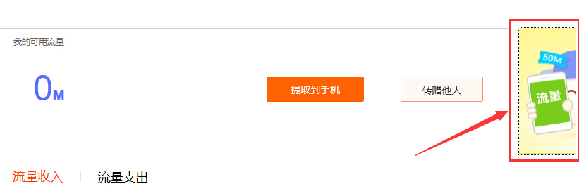 4.進入流量錢包以后就可以看得到提取到手機,轉贈他人這兩個選項,如果有流量則可以在這里點擊使用。