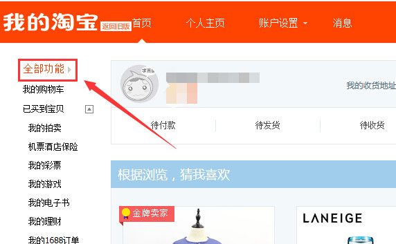 2.進入我的淘寶頁面后再點擊全部功能