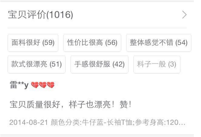 手機(jī)淘寶客戶(hù)端會(huì)自動(dòng)展示出一條買(mǎi)家評(píng)價(jià)信息,而天貓客戶(hù)端則會(huì)自動(dòng)展示出3條評(píng)價(jià)信息。該信息是抓取寶貝在最近2-3小時(shí)內(nèi)的最新評(píng)價(jià),而且這條評(píng)價(jià)是必須超過(guò)十個(gè)字。所以最新的幾個(gè)評(píng)價(jià)是非常重要的,出現(xiàn)中差評(píng)要及時(shí)的給予回復(fù),最好是設(shè)置上好評(píng)返現(xiàn)來(lái)鼓勵(lì)買(mǎi)家給予更多的好評(píng)。