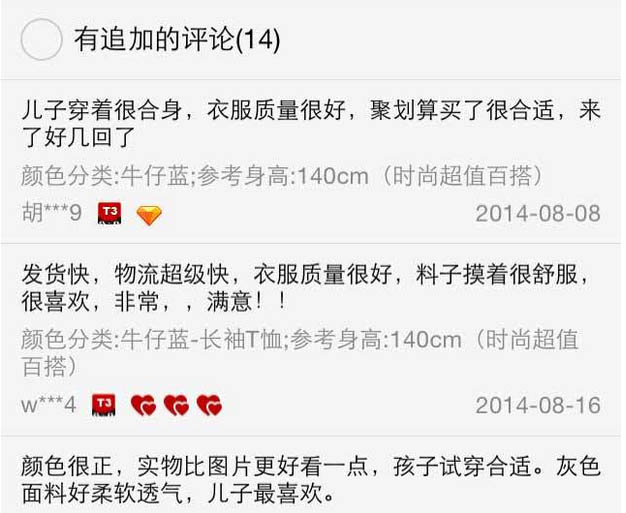 2.簡(jiǎn)單齊全。刪除掉一些不是很重要的內(nèi)容,保留下精華內(nèi)容,比如下面的的好評(píng)截圖,在PC端里面是可以看得很清楚,在手機(jī)端就很模糊了,這種類(lèi)型的內(nèi)容完全沒(méi)有必要用在手機(jī)端上。