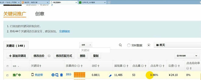 作為一個新手想開直通車,相信你已經在網上學習了不少了經驗,或者請教了不少的朋友讓他們分享直通車的心得。好了當我們準備好一切之后進入到直通車最重要的一步:實操!然后就開始增加了很多系統匹配的關鍵詞。剛開始由于質量分很低,沒有展現沒有點擊怎么辦?只能不斷的提高出價來提高展現......然后: