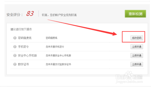 在頁面中找到【修改密碼】這個按鈕并且單擊打開,如下圖所示。