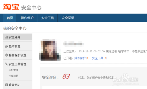 這樣就成功登錄自己的淘寶賬號安全中心了。