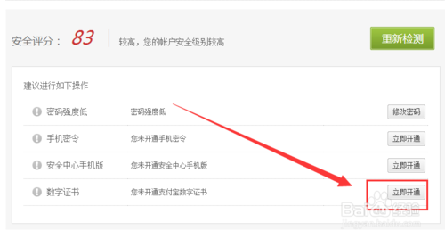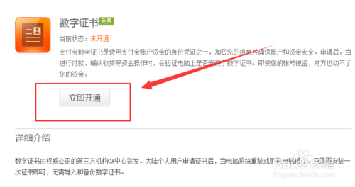 回到【淘寶安全中心】頁面,找到【數字證書】,并單擊右側的【立即開通】。