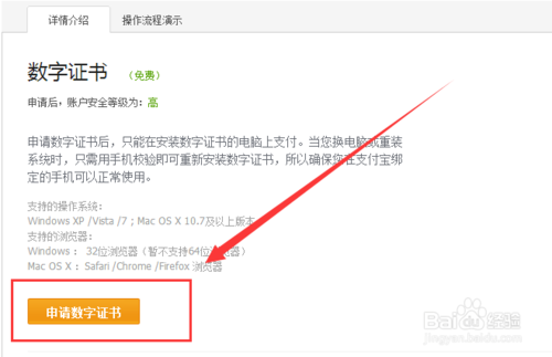 在進入的頁面,繼續單擊【申請數字證書】按鈕,如下圖所示。