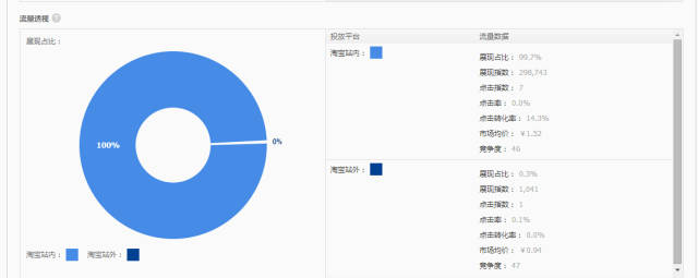 2、根據站內外流量占比與PC移動端流量占比來判斷飆升詞的流量來源,并且調整不同平臺的出價折扣;