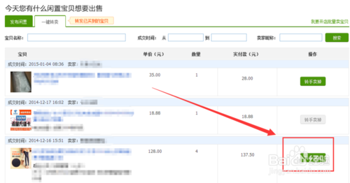 然后在打開的頁面,找到自己需要銷售的商品,然后單擊右邊的【轉手賣掉】按鈕,然后根據要求填寫好信息發布即可。