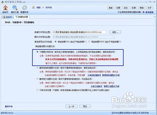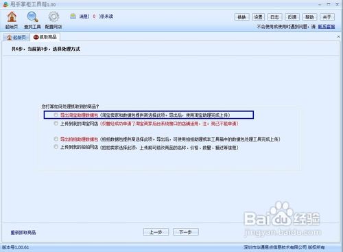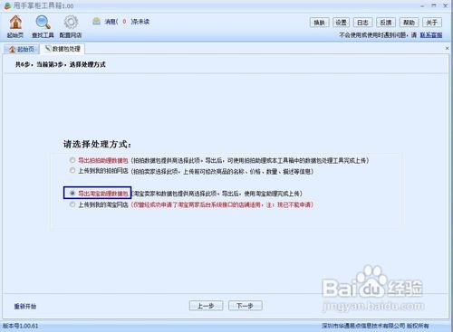 2、然后根據提示導入數據包,傻瓜是操作,下一步即可。這一步的時候選擇導出“淘寶助理數據包”形式,如下圖