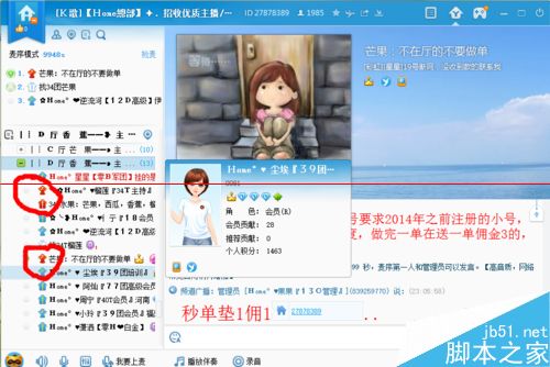 2、找到主持,加為好友。注意看昵稱前邊的馬甲,選擇黃色或者紅色的就是主持。
