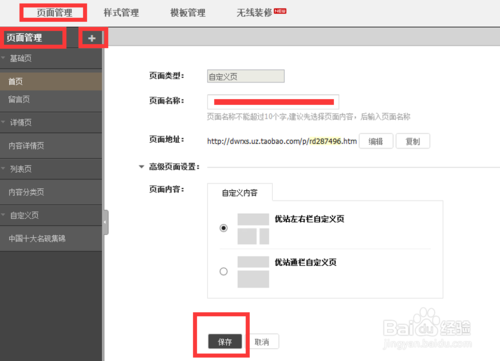 如果這些你還是覺得不夠大氣美觀,那么你再次回到頁面管理,點擊頁面管理右側的那個小“+”號,出現如下界面: