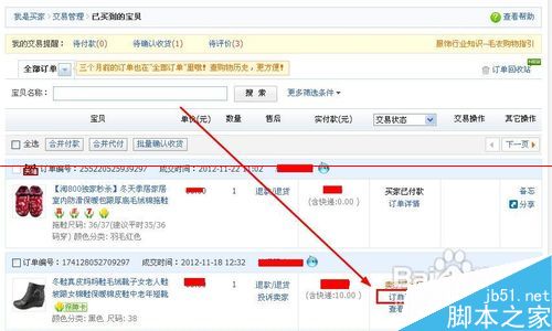 3、下一步中找到你想要延遲收貨的寶貝訂單的哦,然后選擇寶貝的訂單詳情;