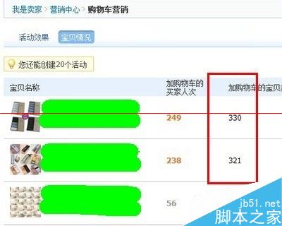 3、進入頁面后,你就可以看到你的商品被買家加入購物車的數(shù)量了,