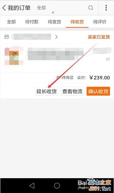 在我的訂單界面的待收貨選項卡里,我們可以看到沒有收貨的物品,在下方可以看到有個”延長收貨“選項,沒錯,點擊就可以延遲收貨了,如下圖所示。