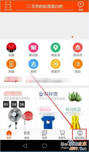 打開手機淘寶后,我們輸入淘寶帳號和密碼,成功登錄淘寶,然后點擊淘寶首屆面右下角的”我的淘寶“,如下圖所示。