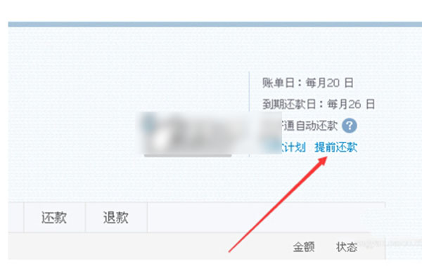 4、注意到頁(yè)面右下方有一個(gè)提前還款的選項(xiàng),這正是我們需要的,點(diǎn)擊提前還款