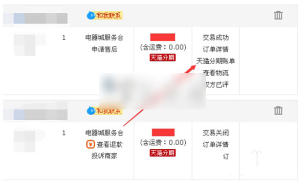 找到需要提前還款的寶貝,點(diǎn)擊右邊的天貓分期付款