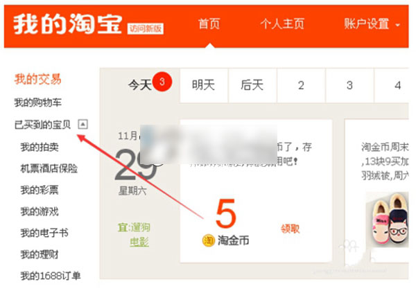 進(jìn)入我的淘寶,點(diǎn)擊已買到的寶貝